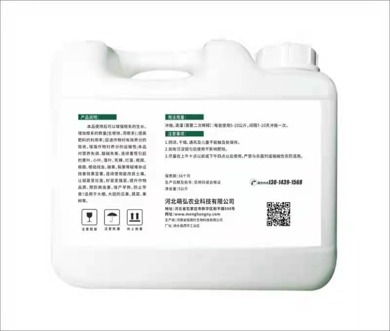 河北萌弘農(nóng)業(yè)科技有限公司是一家集研發(fā)、銷售、生產(chǎn)服務(wù)為一體推廣高新科技為主的綜合性企業(yè),目前主要從事高端液肥,葉面肥,沖施肥的研發(fā)生產(chǎn)和銷售。企業(yè)專注于作物增產(chǎn)的營養(yǎng)方案開發(fā),秉承讓作物營養(yǎng)科學規(guī)范之道,為農(nóng)業(yè)豐產(chǎn)助力。
